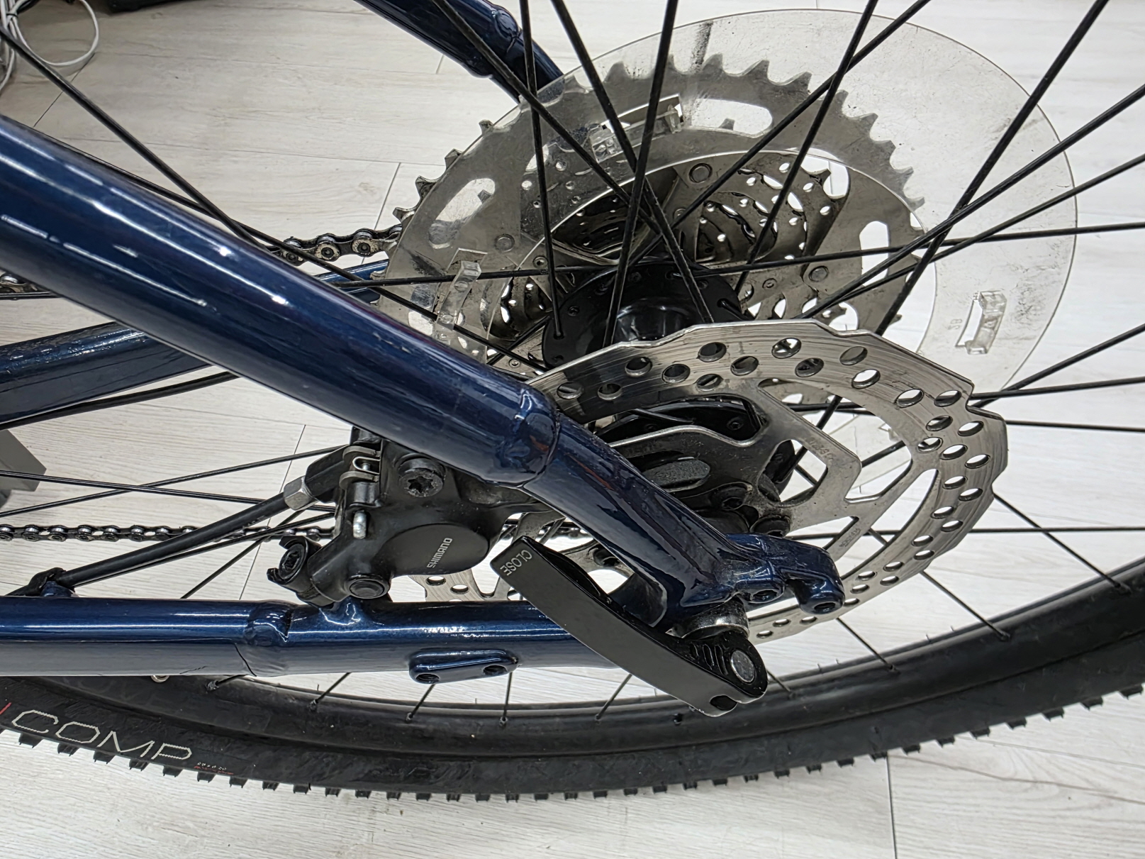 - 색상은 네이비입니다 - RockShox 앞 서스펜션 장착 - Shimano Deore 부품 사용 - 물통 케이지 포함 - 알루미늄 골드 - 휠 29인치 - M / L - 유압 브레이크 - 프론트 싱글기어, 후방 기어 10단